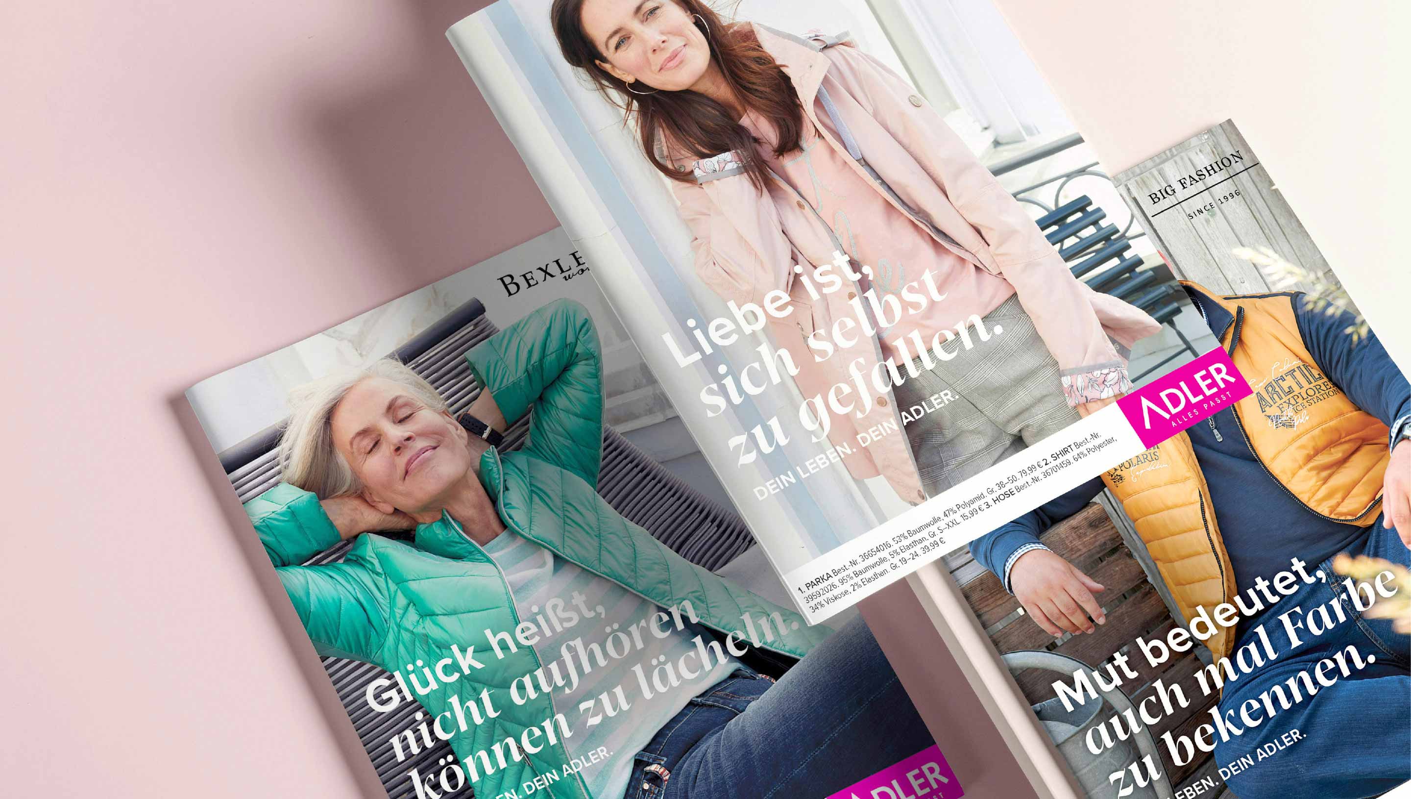 Unsere Katalog-Werbung reflektiert auch immer ein Stück weit den Zeitgeist, sowohl in der Fotografie als auch im Layout, und versucht aktuelle Themen – so weit es ein Katalog zulässt – neben der modischen Kompetenz widerzuspiegeln. Photos by Sandra Weimar / People und Stefan Grossjohann / Stills (GHP)